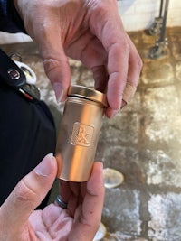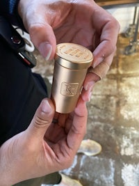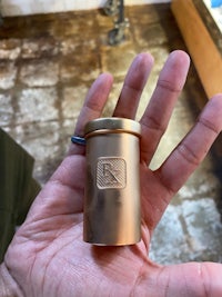 Good Worth and Company Brass/Gold color pill bottle/container. Purchased from Black Sheep Skate Shop Charlotte, North Carolina.