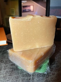 This bar soap is handmade by Edward. He’s from Trinidad.